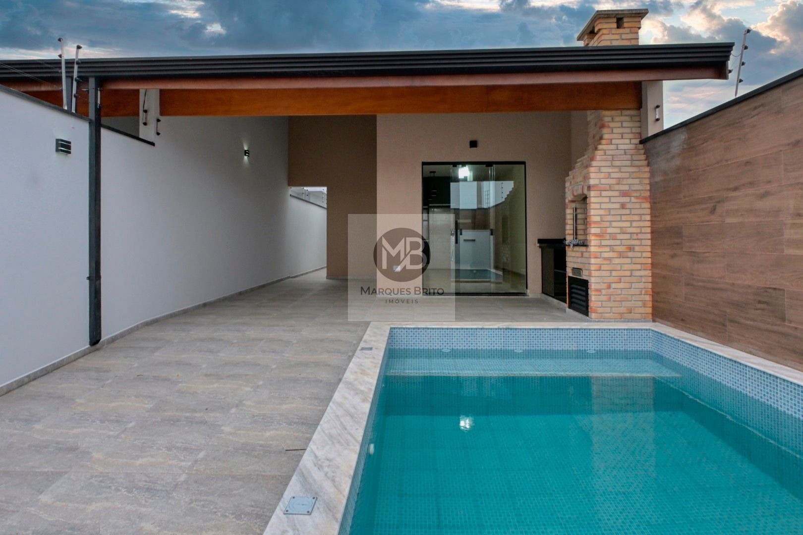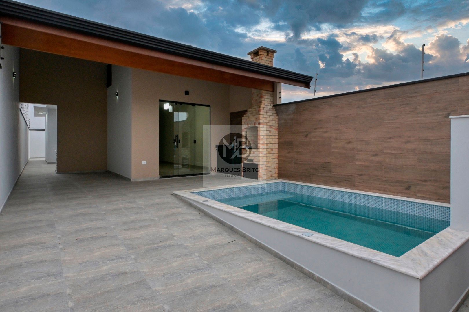 Casa nova térrea com 82,00m² de área construída, com 2 quartos sendo 1 suíte, 1 banheiro social, sala para 2 ambientes, cozinha, área de serviço, churrasqueira, piscina com cascata, ducha, quintal, 2 vagas de garagem.